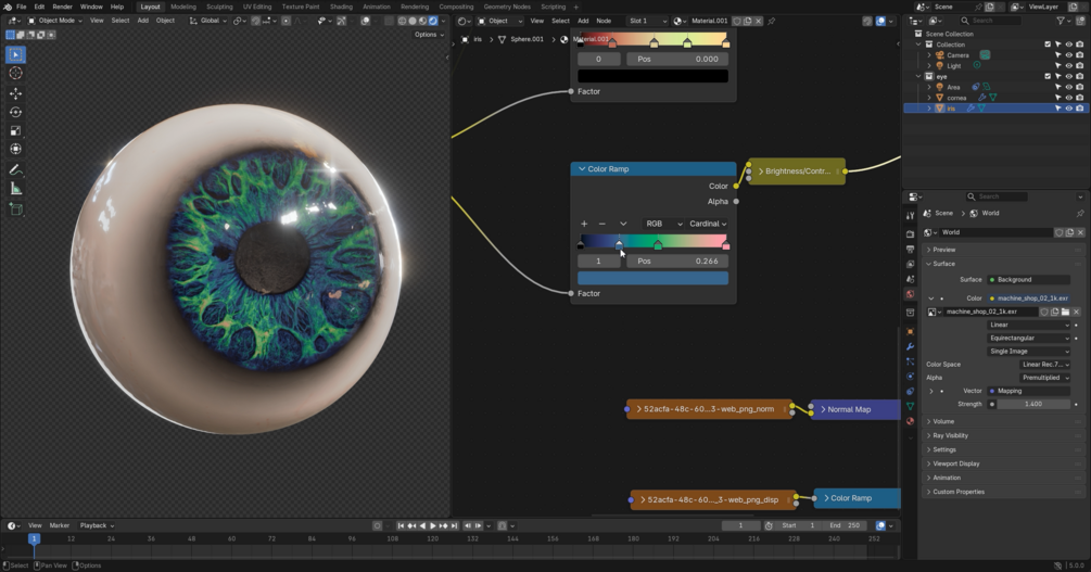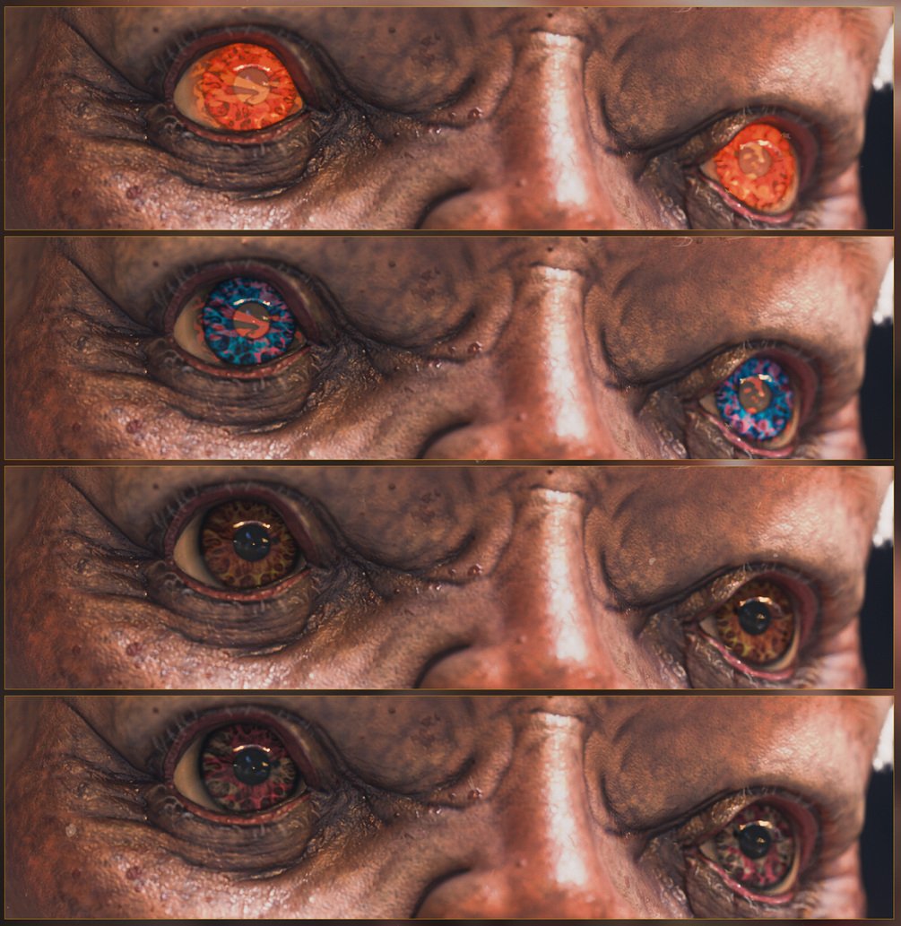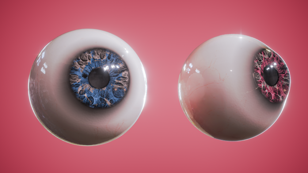 The eye texture itself is not mine. If you can, sculpting and baking maps from your own iris sculpt can go a long way. Add some veins to the cornea texture for more realism