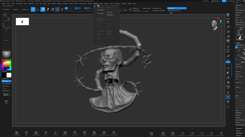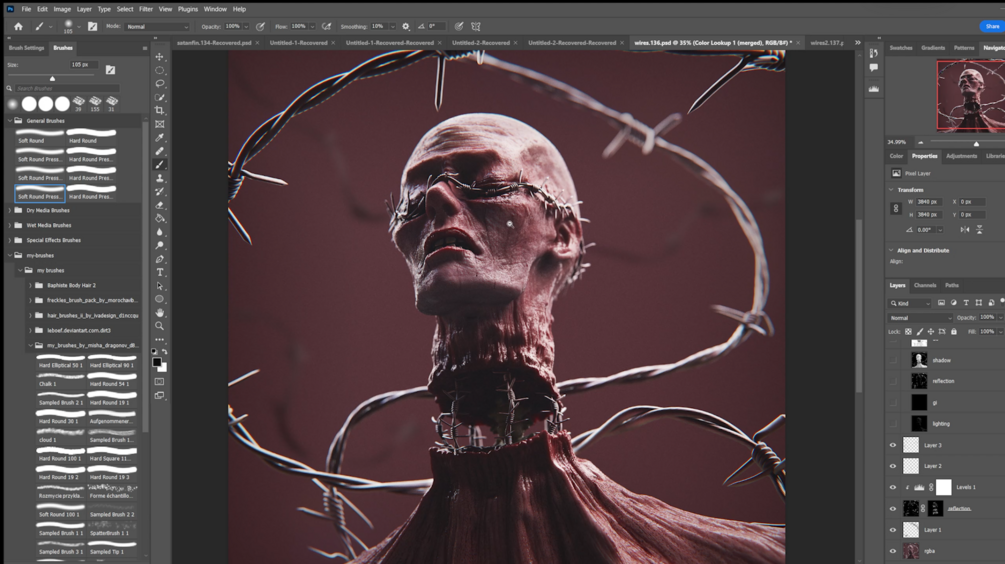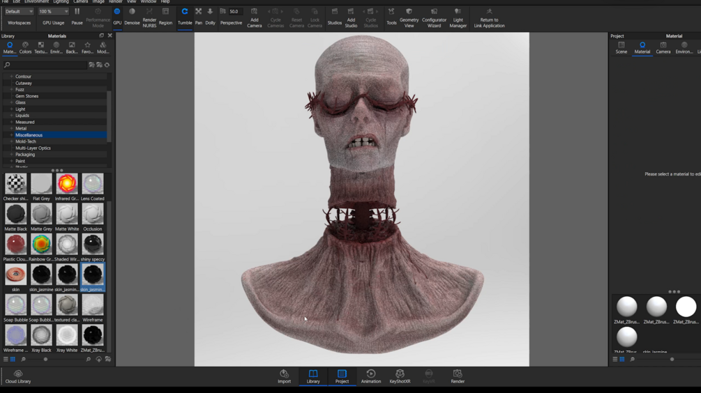 Real-time sculpting + rendering + post-processing video in the form of an MP4. This shows the entire sculpting and texturing process in Zbrush, scene setup, lighting, and rendering in Keyshot, and finally post-processing in Photoshop.